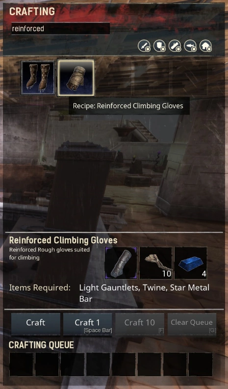 Reinforced Climbing Gloves must be crafted at an